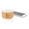 Descripción | Altavoz 3W de bambú natural con batería interna de 300mAh. Reproducirá música hasta 3h con una sola carga y su distancia operacional es de hasta 10 metros BT4.1. Incorpora una luz ambiental. |