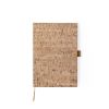 Bloc de notas de línea nature con tapas duras en corcho natural, de sobrio diseño. Incluye 100 hojas blancas lisas, con marcapáginas y soporte para bolígrafo a juego.