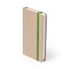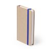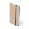 Descripción | Bloc de notas con tapas de suave tacto acabadas en resistente cartón natural. De 100 hojas lisas, con elástico de sujeción y marcapáginas de tela a juego. |