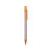 Bolígrafo de línea nature con mecanismo pulsador. Combinación de cuerpo en cartón reciclado de color natural y accesorios en PLA -Ácido PoliLáctico-, que se obtiene a partir de recursos 100% naturales como el almidón de maíz, la yuca o la caña de azúcar, pudiendo convertirse en 100% compostable al final de su ciclo de vida útil. Disponible en variada gama de colores, con tinta azul. Distintivo PLA en parte superior del bolígrafo.