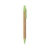 Bolígrafo de línea nature con mecanismo pulsador. Combinación de cuerpo en corcho natural y accesorios en caña de trigo y ABS , para así fomentar la utilización y reciclado de materias primas, reduciendo así las emisiones contaminantes. Disponible en variada gama de colores, con tinta azul. Distintivo Wheat Straw en la parte superior del bolígrafo.