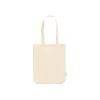 Bolsa de línea nature en algodón orgánico de 140g/m2. Asas largas en algodón orgánico, de 70 cm y reforzadas. Acabado cosido y resistencia de hasta 8kg de peso, con distintivo algodón orgánico en la etiqueta.