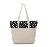 Descripción | 100% algodon. Bolsa de compras grande de algodón canvas. Motivo de lunares estampado de color. Asas de algodón del mismo material que la bolsa.Bolsillo interior. Cierre con cremallera. |