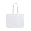 Descripción | Bolsa de línea nature, fabricada en non-woven reciclado de 70g/m2. De fabricación europea, con acabado termosellado, con fuelle, asas largas y distintivo eco/made in sobre la bolsa. |