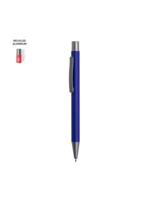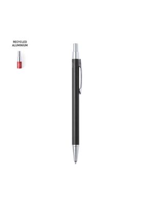 Bolígrafo eco-friendly fabricado en aluminio reciclado, cuyo origen se encuentra en la reutilización casi infinita de uno de los materiales con mayor potencial de reciclabilidad sin perder sus propiedades. Esta característica lo convierte en un material eco-friendly de origen reciclado, fácilmente reciclable y de cuyos procesos de tratamiento y desechos para la obtención del material se pueden obtener nuevos recursos reutilizables, consumiendo menos energía en su fabricación, entre otros factores de sostenibilidad. De mecanismo pulsador, con cuerpo disponible en variada gama de colores metalizados y accesorios en cromado. Con clip metálico, tinta azul y distintivo aluminio reciclado en la parte superior del bolígrafo. Certificación GRS (Global Recycled Standard / Estándar de Reciclaje Global), que garantiza el origen reciclado del material usado para fabricar el producto.