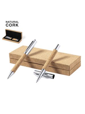 Set OdegorSet de bolígrafo y roller de línea nature. Fabricado en combinación de corcho natural con metal, para así fomentar la utilización de materias primas naturales y reducir las emisiones contaminantes. Bolígrafo de mecanismo giratorio en tinta azul. Roller con capucha y tinta gel en azul, con carga jumbo metalizada. Presentado en estuche individual de corcho con interior en antelina.Desde 4,66 € /ud