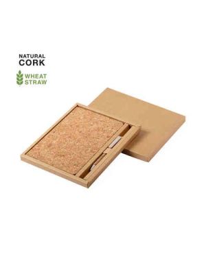 Set MinsorSet de bloc de notas y bolígrafo en línea nature. Incluye bloc de notas con tapas rígidas en corcho natural, con 80 hojas lisas. Bolígrafo de mecanismo pulsador, con cuerpo en corcho natural y accesorios en caña de trigo, para así fomentar la utilización de materias primas naturales y reducir las emisiones contaminantes. Presentado en estuche de cartón troquelado y diseño eco. Tinta negra.Desde 2,02 € /ud