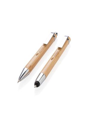 BAMBOOSET Set de bolígrafo y lápizSet de bolígrafo de bambú con pulsador y puntero táctil y lápiz automático de bambú. Presentado en caja de cartón. Tinta Azul.Desde 1,10 € /ud