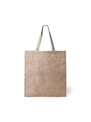 Bolsa ecológica en resistente combinación de materiales naturales -yute y algodón- de 245g/m2. Con atractivo diseño bicolor y acabado cosido. Asas largas de 70 cm reforzadas y resistencia hasta 8kg de peso.