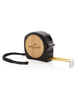 ODENSE V. Cinta métrica de 5 metros en ABS 100% recicladoCinta de 5 metros fabricada con ABS y bambú 100% reciclado. Con freno, clip metálico y presilla para fijar a la muñeca. Se suministra en caja de regalo de papel kraft. 35 x 33 x 19 mmDesde 2,24 € /ud