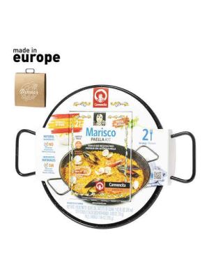 Set Paella Marisco PladenSet con preparado de paella de marisco de 2 raciones, con todos los ingredientes cuidadosamente seleccionados y necesarios para preparar una deliciosa paella. Incluye: bolsita con 200g. de arroz, frasco 30ml de Aceite de Oliva Virgen Extra y 25g. caldo desidratado con especias, aromas naturales y extracto de marisco. Elaborada en España, con paellera metálica esmaltada incluida, en funda de presentación cartón kraft.