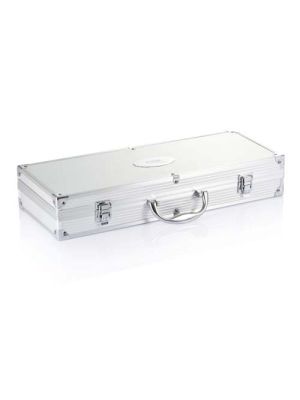 Set Barbacoa 12 piezas en caja de aluminioSet Barbacoa de 12 piezas de acero inoxidable incluye cuchillo, 4 pinchos para mazorcas, 4 pinchos para brochetas, espátula, tenedor con protector y tenazas. Presentado en caja de aluminio con bisagras y asa.Desde 36,90 € /ud