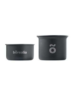 Vaso de acero inoxidable reciclado (90% de acero inoxidable reciclado y 10% de acero inoxidable) con revestimiento en polvo y tapa con orificio de cremallera deslizante. Capacidad: 500 ml.