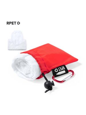 Poncho para adulto en material LDPE. En medidas 102x127cm y presentado en funda de poliéster RPET, elaborado a partir de plástico reciclado, para así fomentar la reutilización de residuos plásticos y ayudar a la sostenibilidad del planeta. Bolsa con mosquetón a juego para fácil transporte y cierre ajustable, disponible en variada gama de colores. Con distintivo RPET en etiqueta exterior.