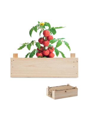 TOMATO Mini-huerto tomates en cajaMini-huerto de cultivo de tomates variedad Raf (Solanum lycopersicum) en una caja de madera que incluye tierra para adobar. Fabricado en la UE.Desde 5,84 € /ud