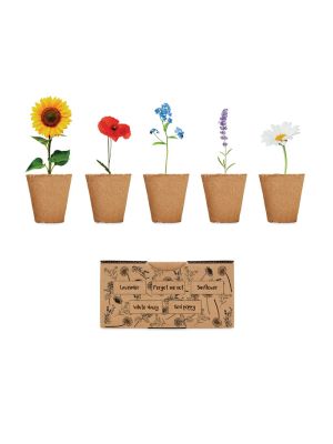 FLOWERS Kit de cultivo de floresKit de cultivo de flores. Caja con semillas de lavanda, no me olvides, girasol, margarita blanca y amapola roja. Fabricado en la UE.Desde 5,20 € /ud