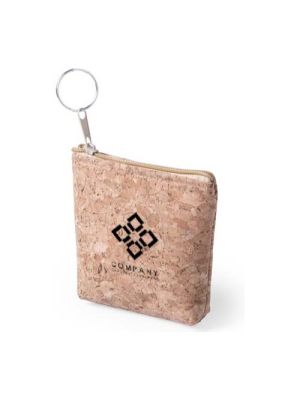 Monedero ecológico de diseño cuadrado en corcho natural y con suave forro interior. Compartimento principal con apertura de cremallera a juego y anilla llavero para transporte.