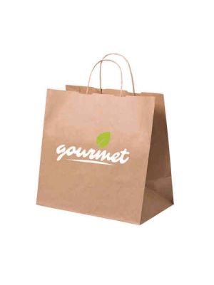 Bolsa Take AwayBolsa en papel de acabado natural de 80g/m2 con asas cortas reforzadas y fuelle. Resistencia hasta 5kg de peso.Desde 0,19 € /ud