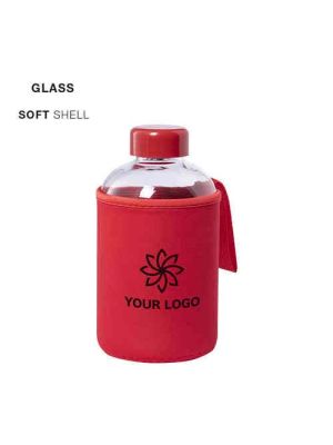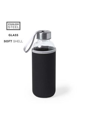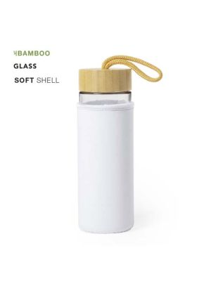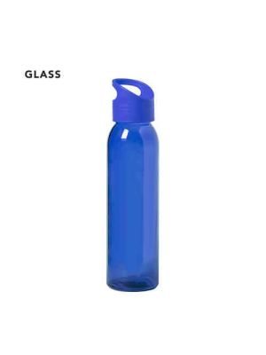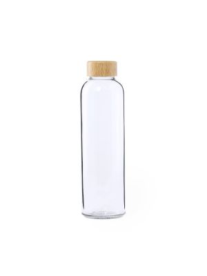 Bidón transparente de cristal de 500 ml de capacidad, especialmente diseñado para marcaje en sublimación. Con tapón a rosca en bambú, libre de BPA. Presentado en atractiva caja de diseño.