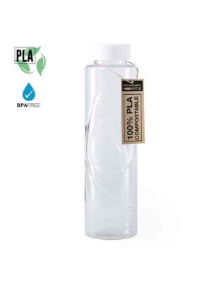 Bidón de linea nature de 830 ml de capacidad. Fabricado en resistente material PLA -Ácido PoliLáctico-, que se obtiene a partir de recursos 100% naturales como el almidón de maíz, la yuca o la caña de azúcar, pudiendo convertirse en 100% compostable al final de su ciclo de vida útil. Con distintivo PLA y presentado en bolsa individual de diseño eco.