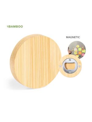 Abridor de botellas fabricado en caña de trigo. Cuenta con un imán que permite adherirlo a cualquier superficie metálica. Presentado individualmente en bolsa de papel reciclada. .La caña de trigo fomenta la utilización de materias primas naturales, reduciendo así las emisiones contaminantes.