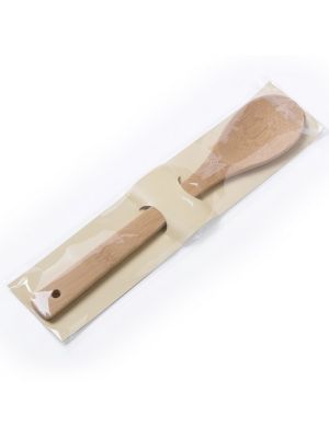 Cuchara de cocina grande de fabricación europea y hecha en madera natural, con cómodo mango. Incluye certificación PEFC, contribuyendo así a la preservación de los bosques y la biodiversidad forestal.