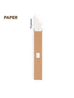 Set de pajitas de papel con tratamiento especial anti humedad. Compuesto por 10 pajitas, presentadas en estuche de cartón reciclado. Disponible en acabado natural y marrón.