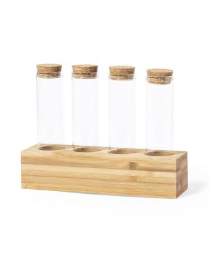 Set de especias de línea nature. Incluye 4 tarros de 70ml fabricados en cristal de borosilicato, que ofrece una resistencia y durabilidad excepcionales, alargando su vida útil y pudiendo ser reutilizados infinidad de veces. Tapones en corcho natural y soporte en bambú, para así fomentar el uso de materias primas naturales. Presentado en caja individual de acabado kraft.