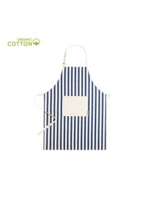Delantal de línea nature fabricado en material 100% algodón orgánico, cultivado usando métodos sostenibles, sin insecticidas, fertilizante u otros productos químicos, favoreciendo así el cuidado del medio ambiente. Con certificación GOTS (Global Organic Textile Standard, ó Norma Mundial de Textiles Orgánicos) que garantiza que los tejidos están hechos de fibras orgánicas. De innovador diseño a rayas verticales, con bolsillo frontal en color natural y de corte por debajo de la rodilla. Ajustable, con cintas en cuello y cintura. Distintivo algodón orgánico en etiqueta.