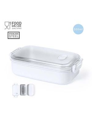 Fiambrera térmica de 500 ml de capacidad, diseñada para mantener la temperatura durante largos períodos de tiempo. Cuerpo en resistente PP, con bandeja interior en acero inox y cierre de seguridad hermético. Ideal para una correcta conservación del calor, con posibilidad de prolongación añadiendo agua caliente.