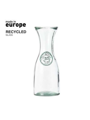 Botella de línea nature de 1l de capacidad, con tapón a rosca metálico. De fabricación europea y hecha en vidrio reciclado con acreditación GRS (Global Recycled Standard / Estándar de Reciclaje Global), que garantiza el origen reciclado del material usado para fabricar el producto. Presentado en estuche de cartón reciclado con ventana.