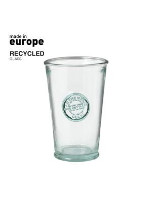 Vaso de línea nature de 300 ml de capacidad. De fabricación europea y hecho en cristal reciclado GRS (Global Recycled Standard / Estándar de Reciclaje Global), que garantiza el origen reciclado del material usado para fabricar el producto.