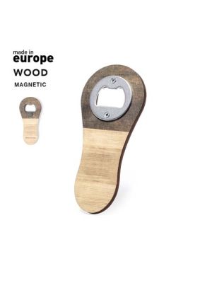 Abridor magnético fabricado en madera natural y de original acabado bicolor. Con mecanismo de apertura metálico, amplia superficie de marcaje y distintivo Made In Europe.