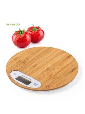 Báscula de cocina de línea nature en bambú pulido. Display digital, con funciones de apagado automático, tara y selección de unidad de pesaje. Alimentación a pilas (de botón incluidas) y peso máximo 5kg. Presentada en atractiva caja de diseño eco.