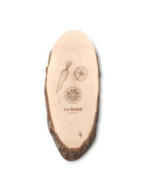 Tabla de madera con corteza en forma ovalada de tamaño mediano y fabricada en la UE de madera Adler. Hecho de 1 trozo de madera. La medida puede variar de una unidad a otra.