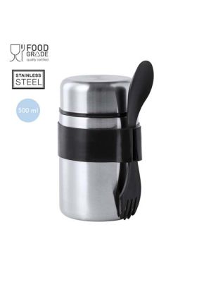 Fiambrera fabricada en acero inox y de 500 ml de capacidad. Cerre de seguridad con tapadera estanca en acero inox. Presentada en atractiva caja individual de diseño.