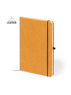 Bloc de notas de línea nature. Con tapas rígidas fabricadas en cuero reciclado, que rescata las fibras desechadas en los procesos de fabricación, minimizando el desperdicio de material, contribuyendo a reducir el impacto ambiental y manteniendo a la vez sus propiedades originales. Interior con 100 hojas de disposición a una raya. Incluye marcapáginas, elástico de cierre y soporte para bolígrafo a juego. Incluye distintivo cuero reciclado.