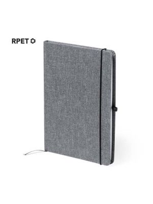 Bloc de notas con tapas rígidas fabricadas en RPET. Interior con 80 hojas lisas. Incluye marcapáginas y elástico de cierre, con logotipo RPET en la contraportada. Disponible en elegantes colores y presentado individualmente en bolsa reciclada. .El material RPET se elabora a partir de plástico reciclado, para así fomentar la reutilización de residuos plásticos y ayudar a la sostenibilidad del planeta.