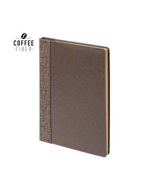 Bloc de notas de línea nature. Con tapas rígidas fabricadas en fibra de café, elaborada a partir de los residuos producidos en la obtención del café. Una alternativa sostenible que favorece la reducción del uso de plásticos, ahorrando energía en el proceso de fabricación y fomentando así el cuidado del medio ambiente. Interior con 100 hojas de disposición a una raya y distintivo fibra de café en contraportada.