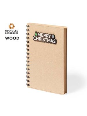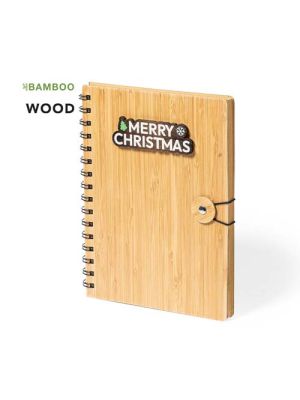 Libreta de anillas de línea nature y diseño navideño. Con tapas rígidas de bambú y original cierre elástico. Incluye 80 hojas con disposición a una raya y diseño eco.