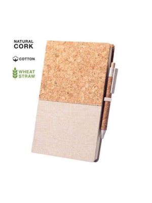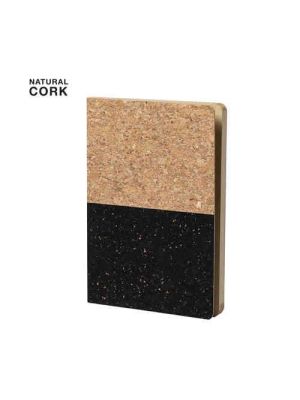 Bloc de notas de línea nature en combinación de corcho natural con polipiel y con tapas rígidas. De 100 hojas lisas con acabado natural, elástico de sujeción y marcapáginas de tela a juego. Disponible en variada gama de colores.