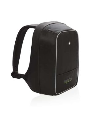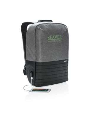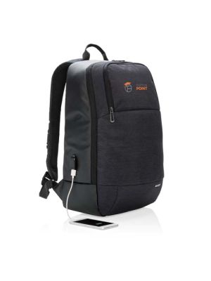 Mochila de poliéster 1680D y 600D para portátiles de hasta 15.6” con material a prueba de cortes, cierres ocultos y bolsillos escondidos para mantener todas tus pertenencias a salvo. Podrás conectar tu powerbank gracias a su puerto USB integrado y así poder cargar tu teléfono o tu tablet mientras te mueves. Incluye correa para trolley. Sin PVC. Diseño registrado®