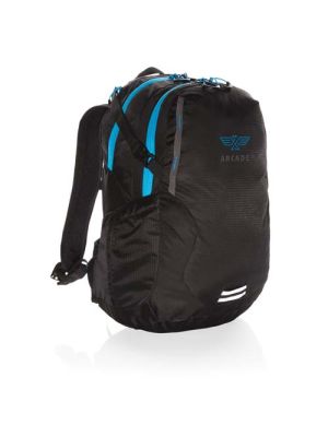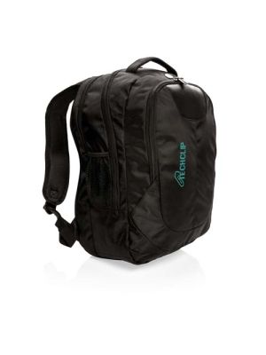 Mochila para portátil de poliéster 1680D con la combinación perfecta entre comodidad y protección. La mochila incluye bolsillos para todas tus necesidades, compartimento acolchado para portátil, compartimento para iPad, apartado para bolígrafos y bolsillos de malla. En una de las asas hay un agujero para introducir auriculares y un bolsillo para las gafas de sol. Registrado®