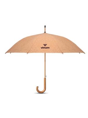 QUORA Paraguas de corcho 25 pulgadasParaguas de 25 de corcho de apertura automática con eje de bambú y mango de madera contrachapada, varillas de fibra de vidrio. Puntas y parte superior de plástico negro. Cierre manual.