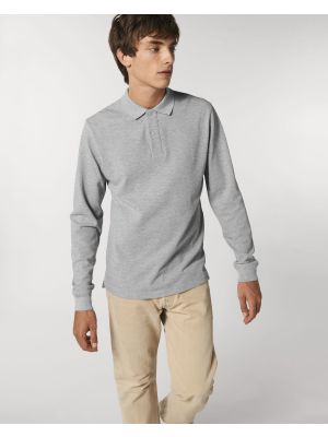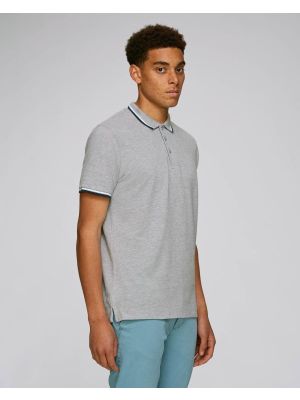 50% algodón orgánico / 50% poliéster reciclado. Calibre 12. Punto tricotado de tendencia. Corte entallado. Mangas montadas. Cuello de pico de canalé 1x1 con fina raya a contraste de 3 mm en interior cuello. Canalé 1x1 en puños y bajo de la prenda. Etiqueta de marca extraíble Tear-away.