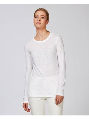 La camiseta de hilo flameado, manga larga, hombros caídos para ella . Corte suelto, Cuello redondo, Long Sleeve, Punto jersey sencillo de hilo flameado.