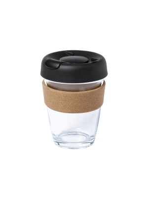 Vaso TarkolVaso de línea nature de 350 ml de capacidad, con banda exterior en corcho natural y libre de BPA. Fabricado en cristal de borosilicato, que ofrece una resistencia y durabilidad excepcionales, alargando su vida útil y pudiendo ser reutilizado infinidad de veces. Tapa de seguridad con dosificador y abre fácil. Presentada en atractiva caja de diseño eco.