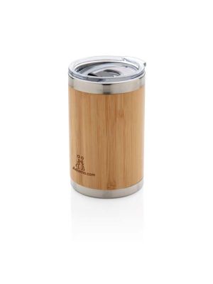 Taza de café bambúEste exclusivo vaso de café de bambú viene con paredes interiores de acero inoxidable 304 apto para alimentos e inoxidable y exterior de bambú orgánico. Tamaño perfecto para adaptarse a la mayoría de las máquinas de café. Mantén tus bebidas calientes hasta 3h y frías hasta 6h. Contenido: 270 ml.Desde 12,58 € /ud