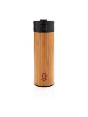 Taza grande café Bogota de bambúEsta taza perfecta para todos los días es lo suficientemente fuerte como para caminar y lo suficientemente elegante para llevar a la oficina. El bambú le da un aspecto atemporal y un agarre cómodo. Para beber con una sola mano y tapa antigoteo con cierre de seguridad. Pared exterior de acero inoxidable 304 y acero inoxidable 201 interior. Mantén tus bebidas calientes hasta 5 horas y frías hasta 15 horas con esta taza aislada al vacío. Contenido: 450 ml. Diseño registrado®Desde 19,98 € /ud