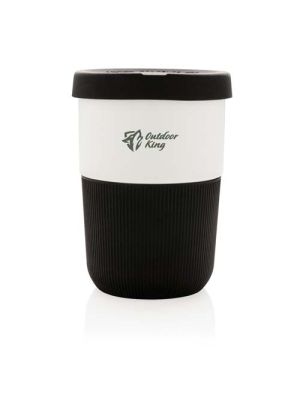 Taza de café PLATaza sostenible de 350ml con agarre y tapa de silicona. Fabricada a partir de material 100% biodegradable (PLA). No contiene BPA y es apta para el lavavajillas.Desde 9,29 € /ud